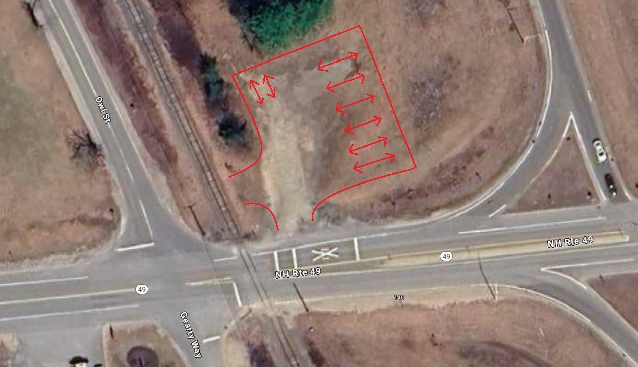 The parking at the Kiosk next to Exit 28 on Rte 49 off 93 South is available for parking in the spots pictured below. This lot is available only in the highlighted area. You can either go west on Trail 152 or N/S on Corridor 11 railroad. Do not ride off trail near the exit or towards 93.